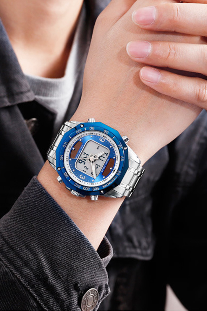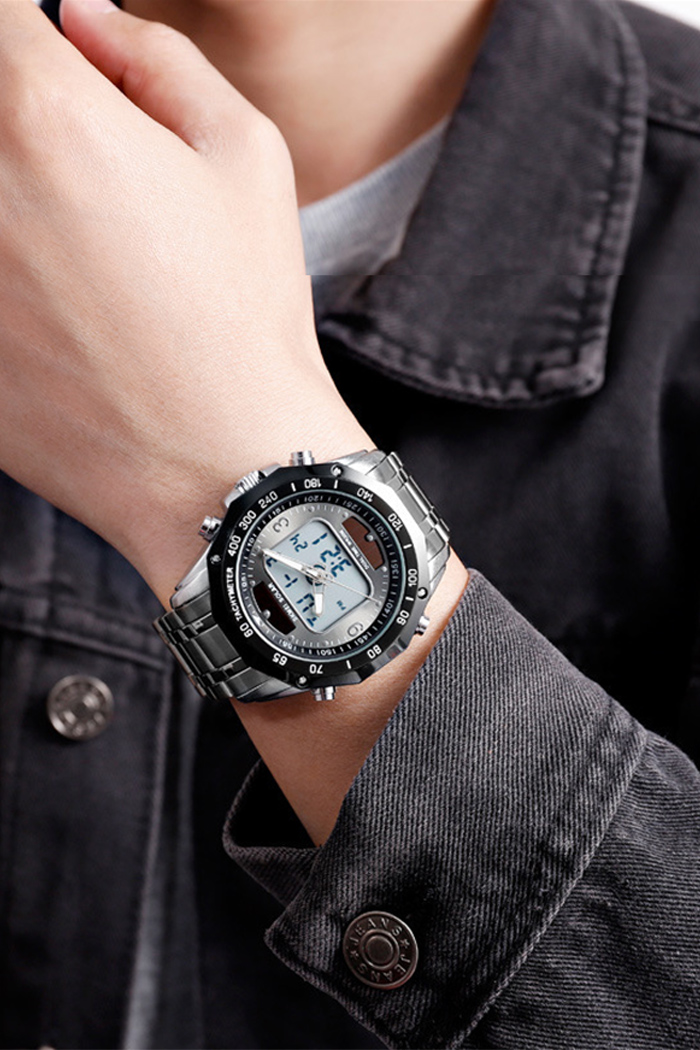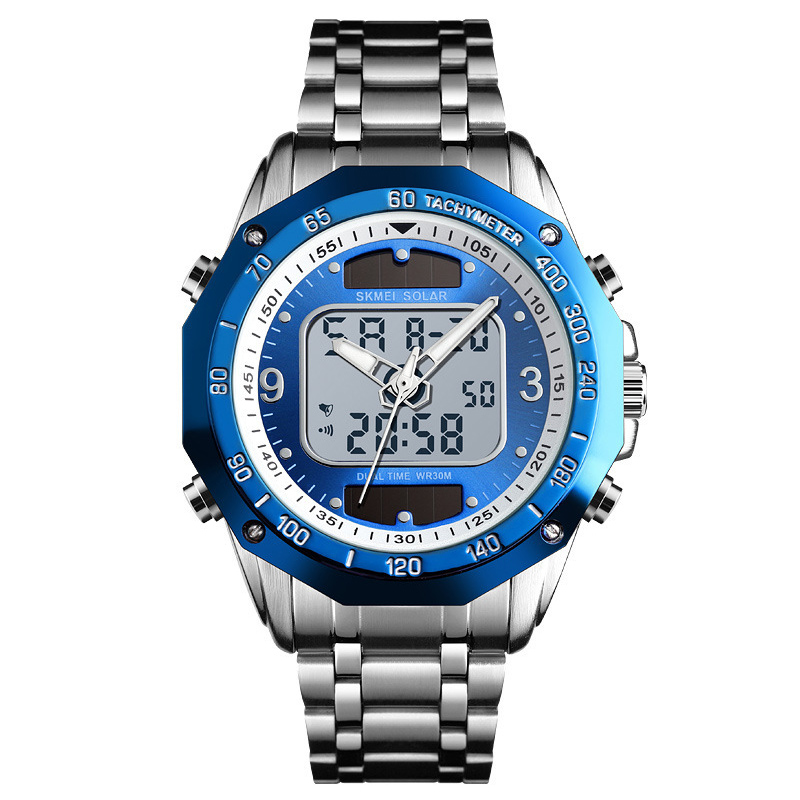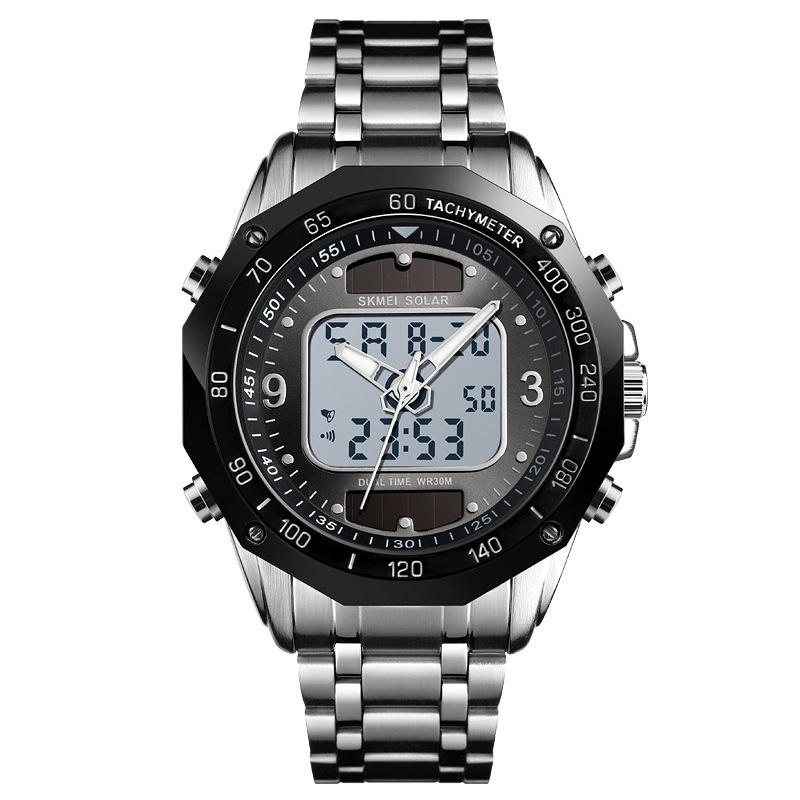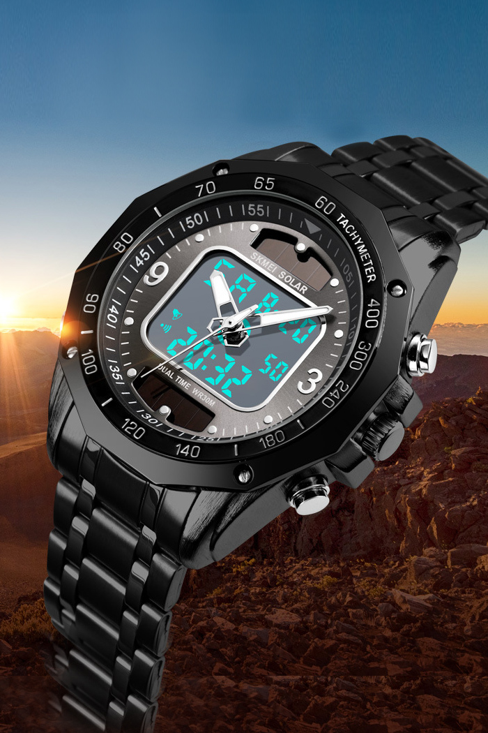 Reloj Solar Para Hombre Con Doble Movimiento Y Banda De Acero